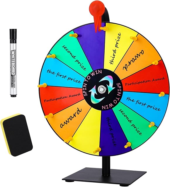 The Prize Wheel Spinner with Stand, 12 Inch Spinning Wheel Featuring 12 Prize Slots, Colorful Prize Spin Wheel Perfect for Carnivals, Home Parties, Trade Shows and Lucky Draw is now available in our store. Order your Prize Wheel Spinner with Stand, 12 Inch Spinning Wheel Featuring 12 Prize Slots, Colorful Prize Spin Wheel Perfect for Carnivals, Home Parties, Trade Shows and Lucky Draw today at a great price and enjoy free shipping!