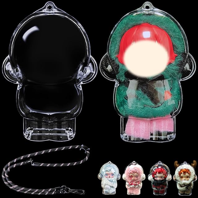 The Protective Case for SKULLPANDA Winter Symphony Series Doll,Clear Plastic Display Standing Style Protective Cover PVC Bag Hanging Model Box with Keychain