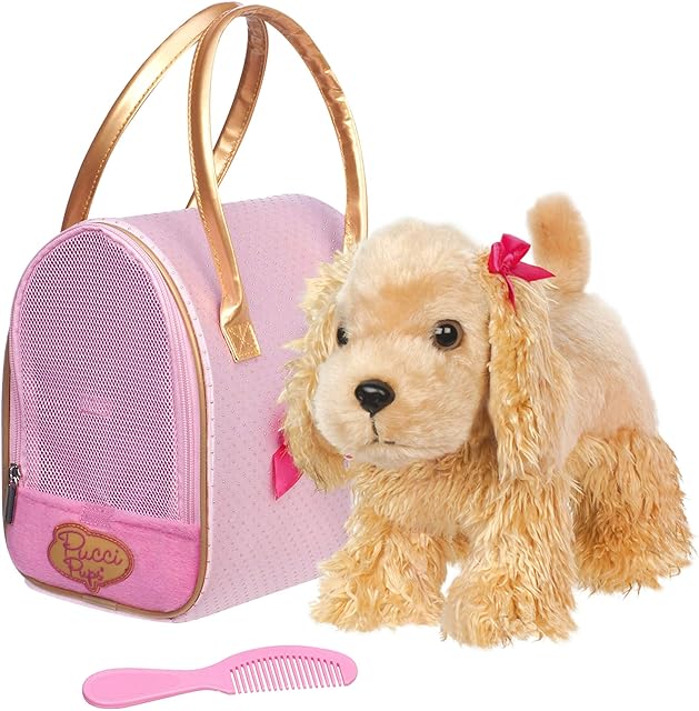 The Pucci Pups – Plush Puppy – Carrier Bag – Golden Dot Glam Bag & Cocker Spaniel – Comb & Purse – Stuffed Animal – 2+ Years