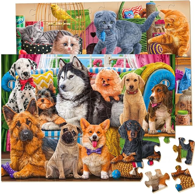 The Puzzles for Kids Ages 4-6 – 2 x 60 Pieces Cats & Dogs Learning Educational Jigsaw Puzzles, Puzzles for Kids Ages 6-8 Gifts for Girls Boys