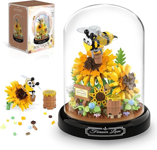 The QLT QIAOLETONG Flower Bouquet Building Sets, Animals Flowers Botanical Collection 548 PCS Mini Bricks Building Blocks Toy for Adults, Valentine’s Day for Her (Bee)