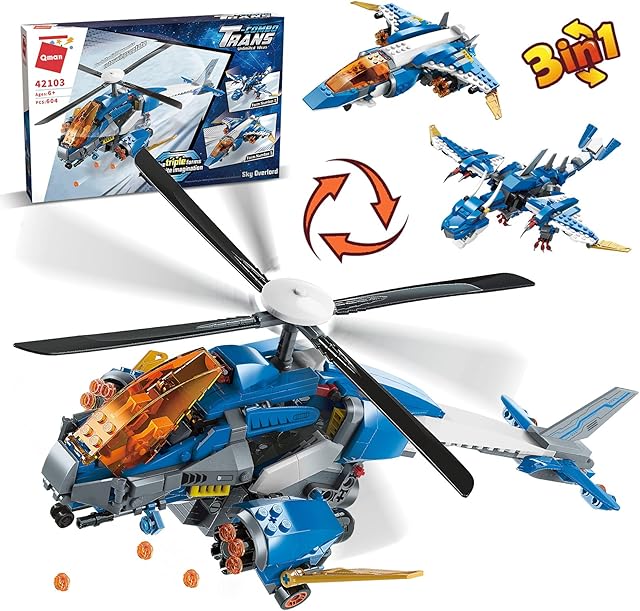 The QMAN 3in1 Building Blocks Cool Helicopter Bomber Monster Dragon Building Toy, Best Toys & Gifts for Boys 6-12 Years Old, Sky Overlord Series (604 Pieces) is now available in our store. Order your QMAN 3in1 Building Blocks Cool Helicopter Bomber Monster Dragon Building Toy, Best Toys & Gifts for Boys 6-12 Years Old, Sky Overlord Series (604 Pieces) today at a great price and enjoy free shipping!
