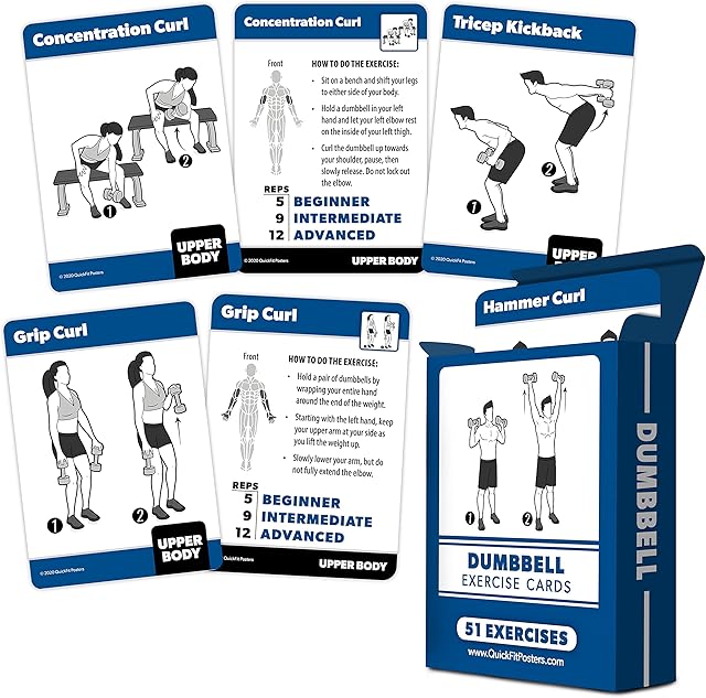The QUICKFIT Dumbbell Exercise Cards – Fitness Playing Cards with Over 50 Dumbbell Workouts – 2.5″ x 3.5″ (Standard Playing Card Size)