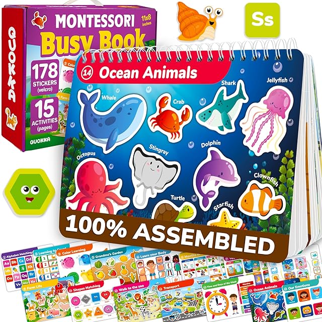 The QUOKKA Montessori Busy Book for Toddlers 3-5 – Pre K Toddler Learning Activities for Homeschooling – My Preschool Busy Book for Ages 4-8 – 15 Kids Educational Activities