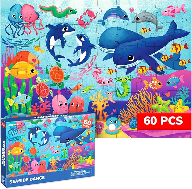 The QUOKKA Puzzles for Kids Ages 4-6 – 60 Piece Jigsaw Puzzles for Toddlers Ages 3-5 with Ocean Animals – Quiet Time Toys for Preschoolers 2-4 – FSC Certified Educational Learning Game for Boys and Girls