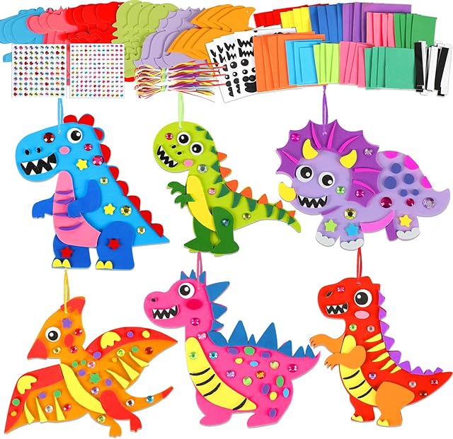 The Qyeahkj 24 Sets Dinosaur Crafts Kit for Kids Dinosaur Foam Arts Gifts with Magnet Cartoon Foam Sticker Craft Projects for Toddlers Home Class Fun Game Activities Birthday Party Favors Supplies