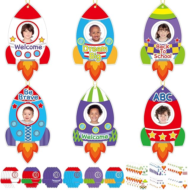 The Qyeahkj 36 Set Back to School Craft Kits Rocket DIY Picture Frame Craft Outer Space Photo Frame Welcome Sticker Art Craft for Kid Gift Home School Classroom Activity Wall Bulletin Board Decor Supplies