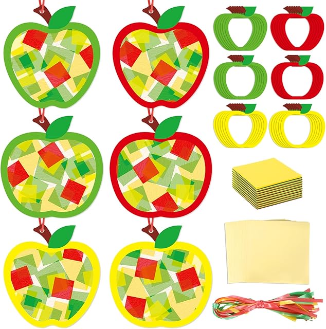 The Qyeahkj 36 Set Fall Apple Suncatchers Crafts for Kids DIY Autumn Window Tissue Paper Craft Kit Hanging Decor for Classroom Home Activity Art Project Birthday Party Favor Gift