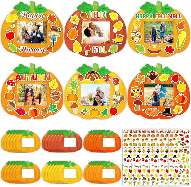 The Qyeahkj 36 Sets Fall Thanksgiving Craft for Kids DIY Autumn Pumpkin Picture Frame Craft Kit with Easel Fun Photo Frame Craft and Arts Kit for Home Class Kindergarten Party Art Activity