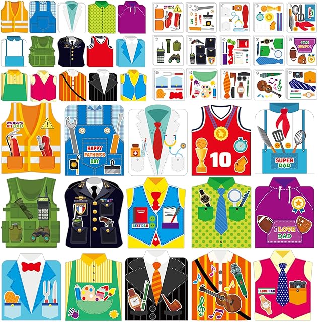 The Qyeahkj 60 Packs Father’s Day Card Making Kits for Kids Father’s Day DIY Arts Crafts Father’s Day Shirt Greeting Card with Stickers Handmade Crafting Card Bulk for Father’s Day Party Supplies Decor
