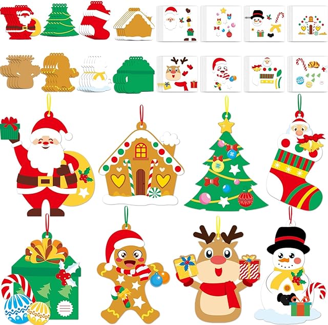 The Qyeahkj 64 Sets Christmas Craft Kit for Kid Christmas DIY Art Ornaments Bulks, Make Your Own Santa Claus Tree Gingerbread House Reindeer Christmas Holiday Party Game Activity Supplies