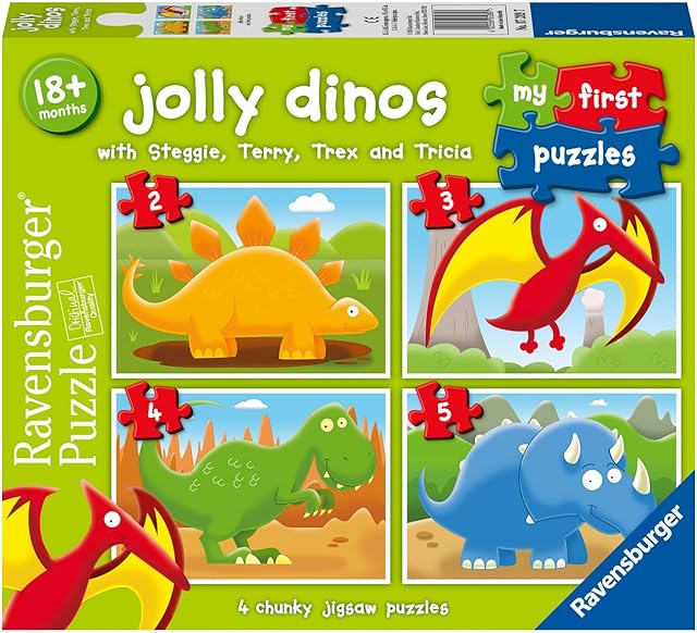 The Ravensburger My First Puzzle: Jolly Dinos (2: 3: 4 & 5 Piece) Jigsaw Puzzle for Kids – Every Piece is Unique, Pieces Fit Together Perfectly