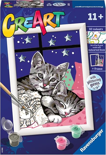 The Ravensburger Sleepy Kitties Paint by Numbers Kit for Kids – 20213 – Painting Arts and Crafts for Ages 11 and Up is now available in our store. Order your Ravensburger Sleepy Kitties Paint by Numbers Kit for Kids – 20213 – Painting Arts and Crafts for Ages 11 and Up today at a great price and enjoy free shipping!