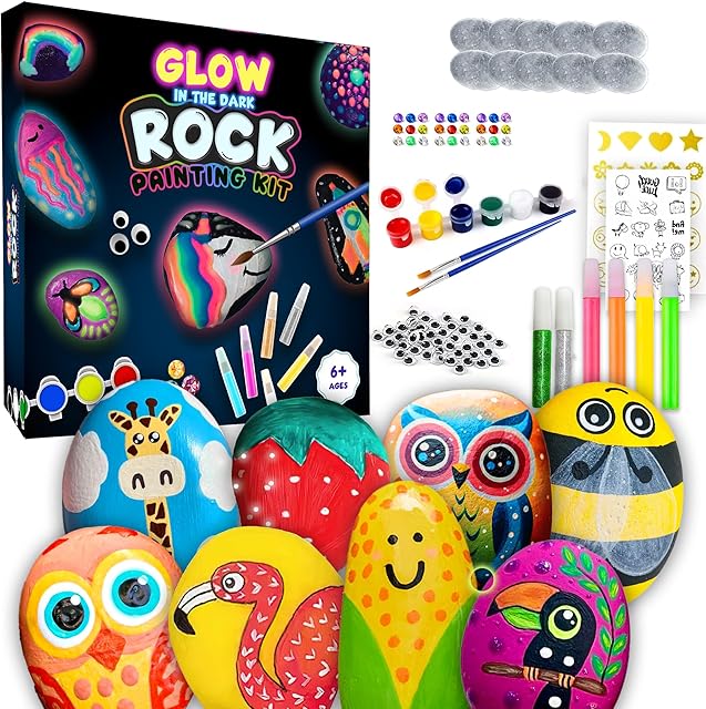 The Rock Painting Kit – Glow in The Dark, 60+ Pcs Arts and Crafts Rock Painting kit for Kids 6-12, Art Supplies with Glow & Standard Paints, Outdoor Toys for Boys & Girls Birthday & Easter Gifts is now available in our store. Order your Rock Painting Kit – Glow in The Dark, 60+ Pcs Arts and Crafts Rock Painting kit for Kids 6-12, Art Supplies with Glow & Standard Paints, Outdoor Toys for Boys & Girls Birthday & Easter Gifts today at a great price and enjoy free shipping!