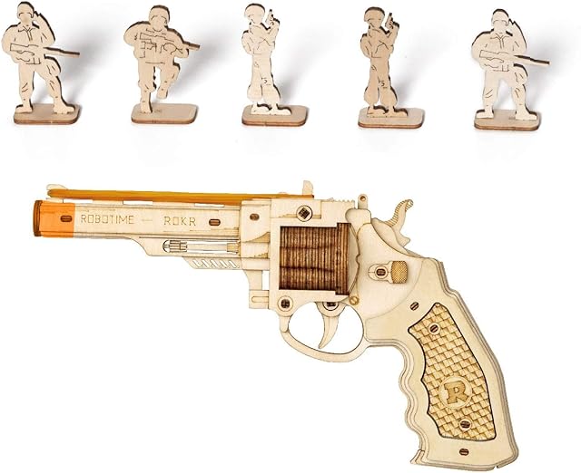 The ROKR 3D Wooden Puzzle DIY Building Toys Mechanical Model – Multi-Player Game with Wood Targets &Rubber Bands, Gifts for Adults