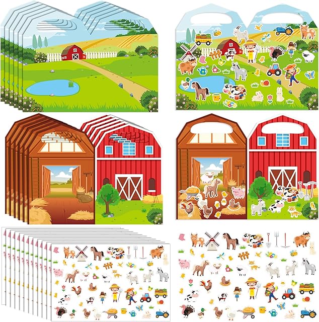 The Sabary 12 Set Farm Animal Sticker Scene Include 12 Backgrounds 12 Sheets Self Adhesive Stickers for Kids Sunday School Crafts Decorations