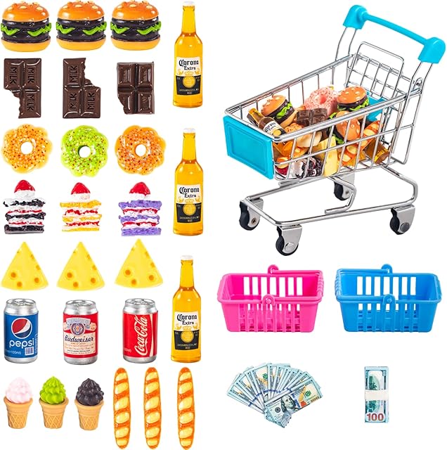 The SAMCAMI Miniature Dollhouse Accessories, Mini Food/Mini Shopping Cart/Mini Shopping Basket for Doll House Accessories and Furniture, Miniature Things