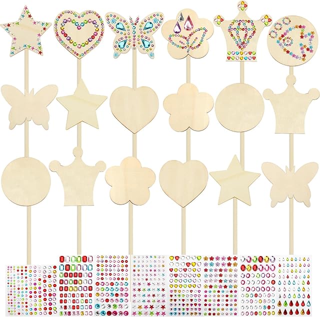The SAYAYA 48 Pack Fairy Wands Craft Kit, 6 Styles Unfinished Wooden Princess Wands with Stickers DIY Fun Party Supplies for Birthday Parties, Princess Celebrations, and Creative Gift & Craft Activity
