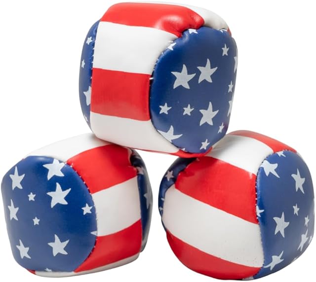 The Set of 3 USA Flag Patriotic Balls – 2” American Flags Footbag Juggle Ball Kit for Kids and Adults, Hacky Sack July 4th Party Accessories, Outdoor Games and Hand-Eye Coordination Fun!
