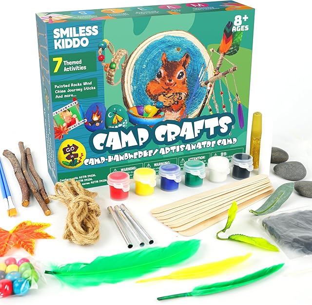 The SMILESSKIDDO Camping Craft for Kids – Cool Stuff Including Rock Painting, Wood Painting, Wind Chime Kit – Summer Crafts for Ages 4-8, 7 Activities Create 12 Arts and Crafts Projects