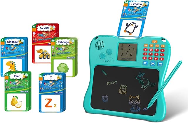 The SPG300 All-in-One Kids Learning Tablet & Drawing Board, 130 Educational Cards 7.5-inch Screen Math Games Memory Training & Creative Writing Pad, Gift for Boys & Girls 3+
