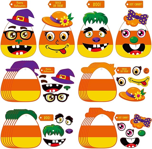 The Sumind 24 Sets Halloween Craft Kits for Kids Halloween Candy Corn Sticker DIY Arts Craft Trick or Treat Party Favors Decorations Fun Home Activities for Girls Boys Party Supplies Classroom Arts