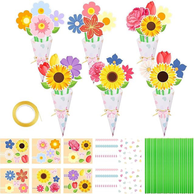 The Taikuray 24Pcs Flower Bouquet Craft Kits, Mother’s Day Crafts for Kids Make Your Own Flower Bouquet Crafts for School Classroom Home Fun Activities Teacher Appreciation Week Thankful DIY Gifts