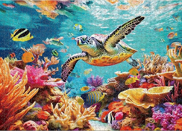 The takfot Puzzles for Adults 1000 Pieces – Ocean Beach Sea Turtle Coral – 1000 Piece Puzzles with Letters on Back – Jigsaw Puzzles 1000 Pieces for Fun Game Nights – 27.6″ L X 20.5″ W, 1:1 Poster