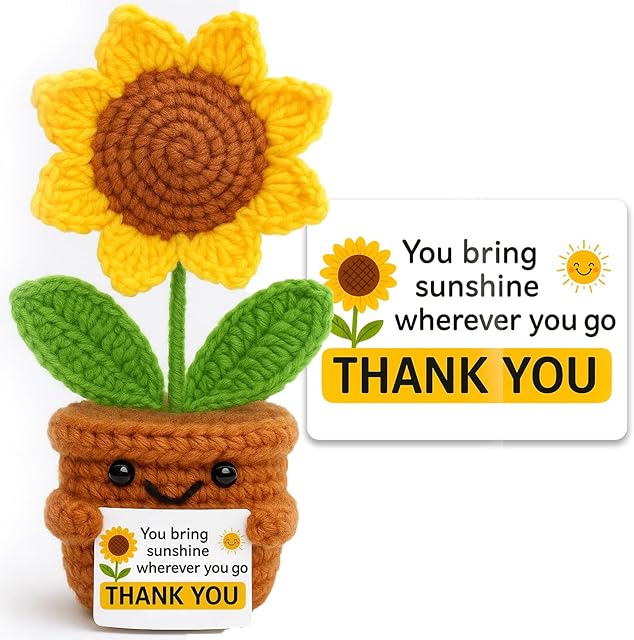 The Thank You Gifts for Women Crochet Sunflower, Handmade Emotional Support Plant – Cute Teacher Appreciation Gift, Coworkers Friend Christmas Birthday Home Office Desk Car Decor