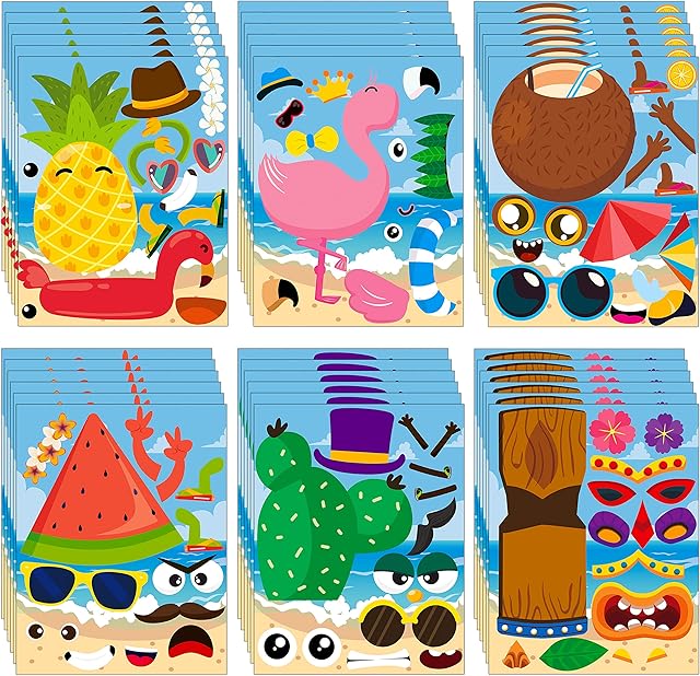 The Ticiaga 36PCS Hawaii Make a face Sticker Sheets, Make Your Own Pineapple Flamingo Stickers,Tropical Luau Craft Project for Kids, Summer Beach Mix and Match Stickers, Hawaiian Party Favors for Boy Girl