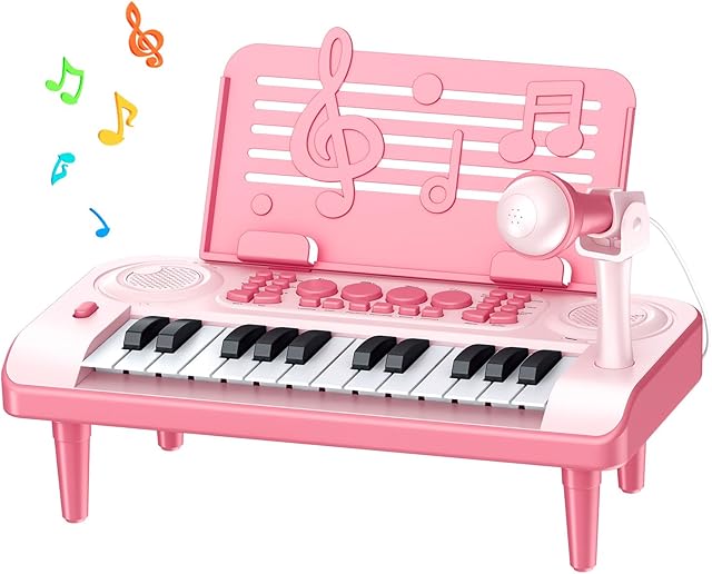 The Toddler Piano Toys Gifts for Girl Age 1 2 3-5, Pink Baby Piano Music Toy, Kids Piano with 24 Keys, Microphone and Music Sheet Stand, Ideal Xmas Birthday Gifts for Girls 1 2 3 4 5 Years Old