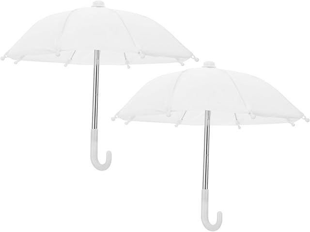 The UPKOCH 2pcs Mini Doll Umbrella Model for 18 Inch Girl Doll Clothes Accessories, 11.02 X 8.66 Inch, Cloth Material, Small White Umbrella for Kids’ House Decor and Rainy Photography Props