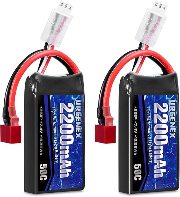 The URGENEX 7.4V 2200mAh Lipo Battery 50C(Burst 80C) High Discharge Rate RC Batteries with Dean-Style T Plug Fit for RC Car Truggy, RC Airplane, FPV Drone, UAV Quadcopter and Helicopter