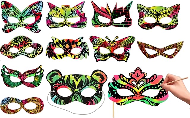 The VHALE 24 Sets Rainbow Scratch Paper Art Superhero Masks, Dress Up Halloween Costumes, Creative Classroom Arts and Crafts, Fun Drawings, Travel Toys, Party Favors for Kids