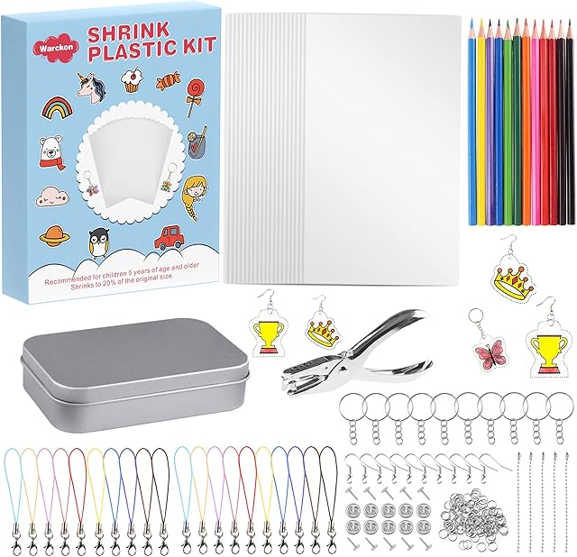 The Warckon 200 Pieces Shrink Plastic Sheet Kit Include 20 Blank Sheets Shrinky Art Paper,Hole Punch,165 Keychains Accessories,12 Colored Pencils for Kids DIY Ornaments Creative Handmade Craft is now available in our store. Order your Warckon 200 Pieces Shrink Plastic Sheet Kit Include 20 Blank Sheets Shrinky Art Paper,Hole Punch,165 Keychains Accessories,12 Colored Pencils for Kids DIY Ornaments Creative Handmade Craft today at a great price and enjoy free shipping!