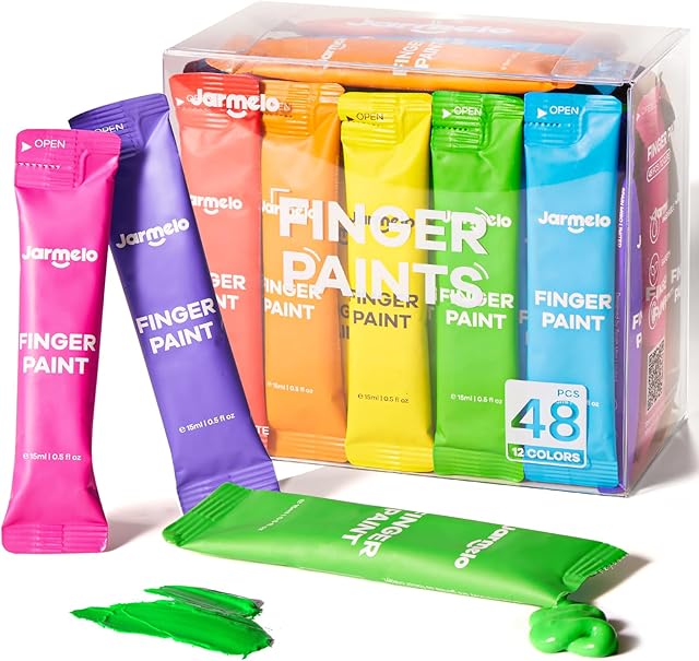 The Washable Finger Paints for Toddlers 1-3, 12 Colors Non-Toxic Paint for Hand and Feet, Safe Kids Paints for Art & Craft Supplies, Preschool Learning Activities for Kids 2-4 (48 Pcs)