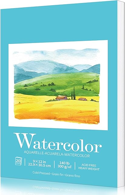 The Watercolor Pad for Painting Practice,9″x12″,Cold Pressed,Acid Free,Pad for Watercolor Paint,Pencil,Ink,Pastel and Acrylic,Watercolor Sketchbook,20 Sheets,White