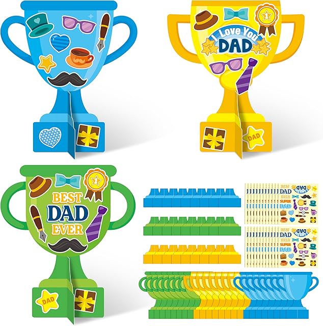 The WATINC Father’s Day Trophy Craft Kit – Make Your Own 24Pcs Best Dad Super Dad Trophy Craft, DIY Tabletop Party Decoration Supplies, Fun Activities Art Project Family Home School Classroom for Kids