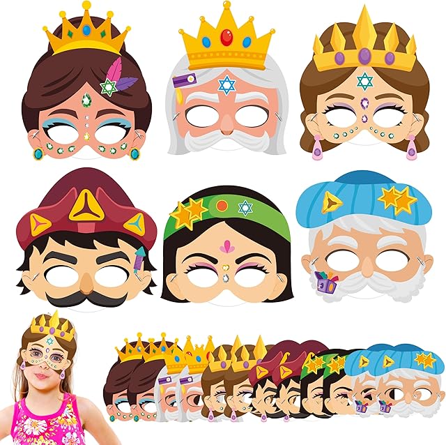 The WATINC Purim Day Story Character Mask for Kids, Purim Mask Costume Decorations, Jewish Holiday Gifts Set Paper Art Craft Role Play Kit Party Favors Supplies School Classroom Activity Project(36pcs)