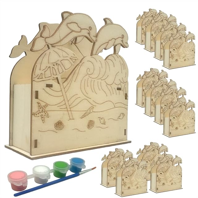 The Wooden Dolphin Beach Crafting Kit: 12 DIY Unfinished Dolphin Beach Decoration Party Favors Supplies Ideal for Kids and Adults of All Ages with Paints and Brush (Pre-Assembled)