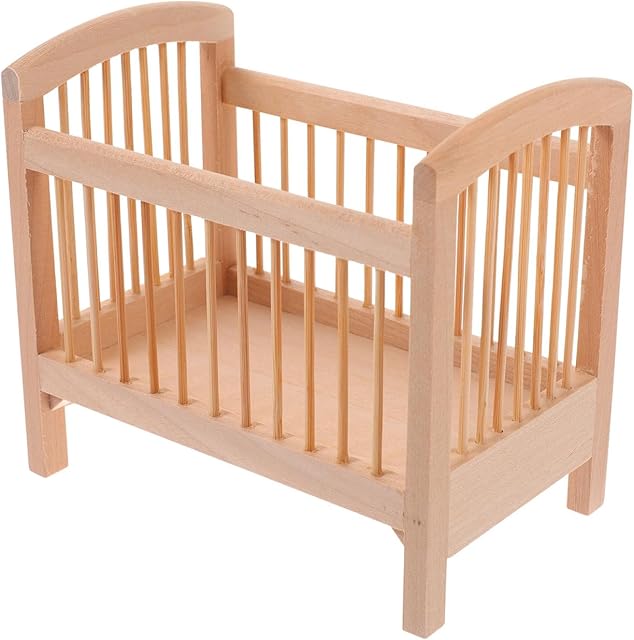 The Wooden Miniature Baby Crib Model 1 12 Scale Dollhouse Furniture Mini Bed for Home Decor and Dollhouse Accessories