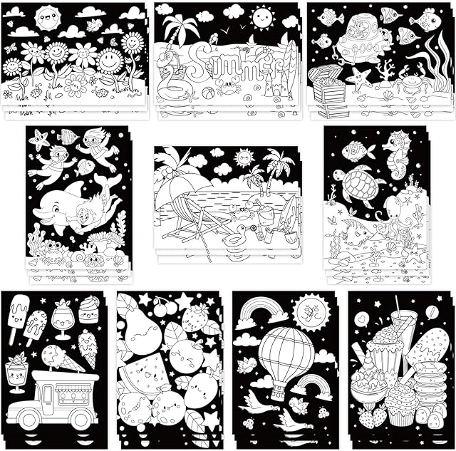 The Zhanmai 30 Pcs Funny Color Your Own Summer Posters DIY Happy Summer Crafts Color Your Own Poster Bulk for Holiday Home School Party Activities