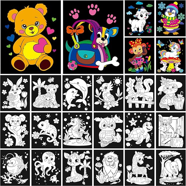 The Zhanmai 48 Pack Velvet Coloring Posters Fuzzy Velvet Coloring Posters DIY Crafts for Kids Color Your Own Poster Bulk for Holiday School Home Party Activities(Animal)