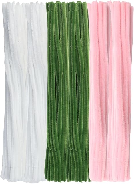 The Zorfeter 300 Pcs Thick Pipe Cleaners, Pastel Craft Supplies Macaron Color(Military Green, White, Light Pink) Chenille Stems, Creative DIY Decorations for Art and Craft Projects