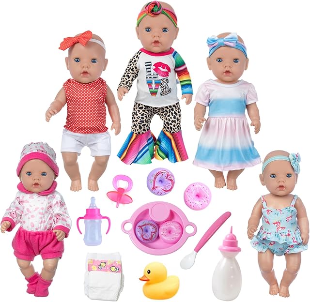 The ZQDOLL 22 Pcs 14-16 inch Baby Doll Clothes Dress and Accessories Include 5 Set Doll Clothes with Backpack Mini Phone ,Pillow Eye Mask fits 43cm New Born Baby Dolls, American 18 Inch Dolls