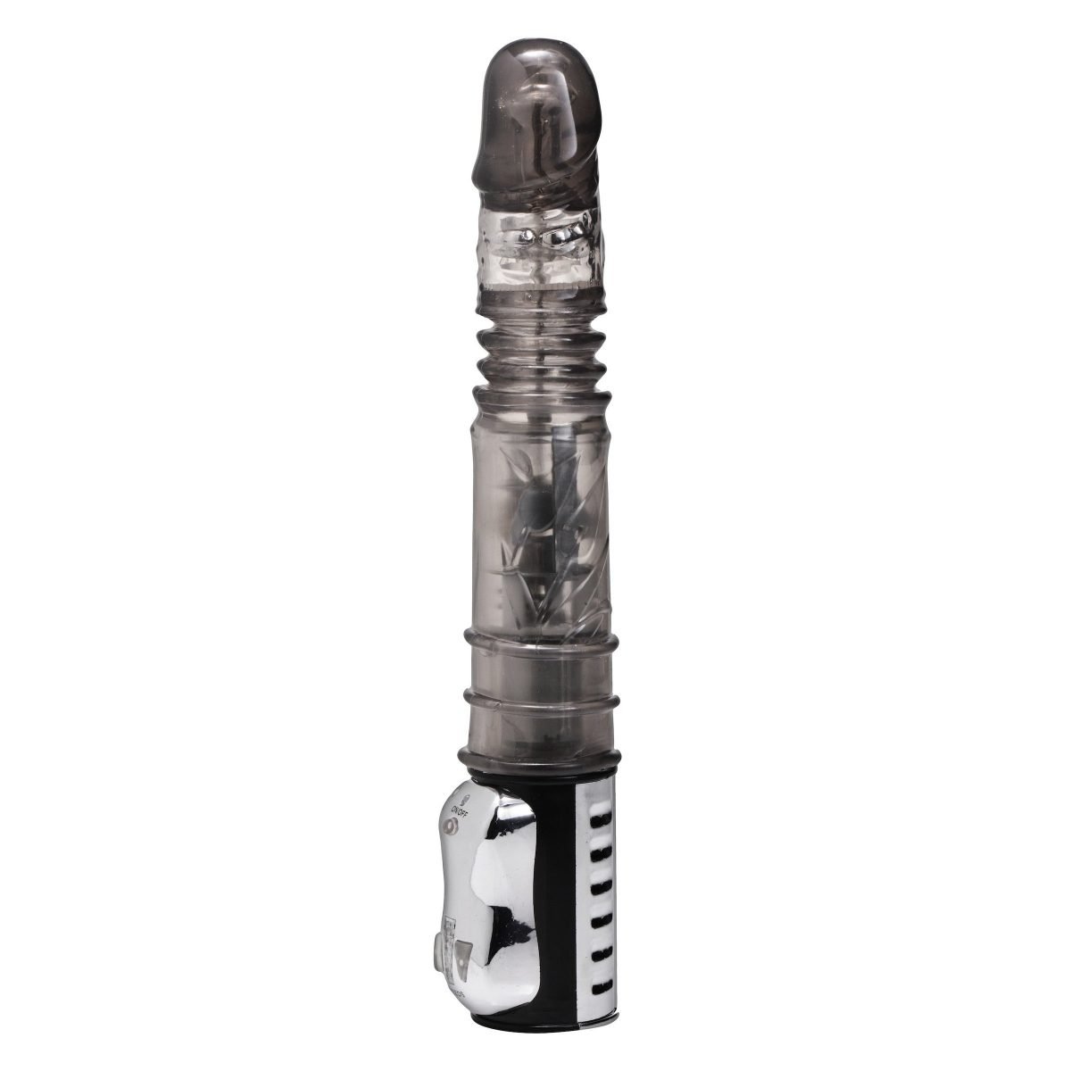 Introducing the revolutionary Thruster Sex Stick! Expertly designed for anal play, this magnificent piece boasts a powerful motor that extends throughout the shaft. You can even see it working! Non-jamming metal beads rotate at the top, coupled with a unique thrusting action for the push and pull of anal play. All this while the shaft is moving up and down and the head takes it up a notch by rotating in a semi-circular motion! This toy is a must-have for anyone interested in taking anal play to a whole new level. Measurements: 11.5 inch overall length, 8.25 inch insertable length, 1.85 inch max insertable diameter Material: TPR, ABS Color: Smoke Note: Requires 4 AA batteries, not included