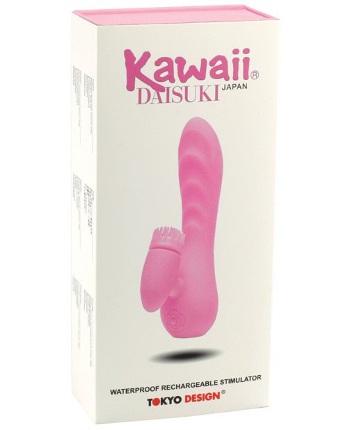 Tokyo Design Maro Kawaii Wave Daisuki 2. Features 8 vibration patterns and 8 rotation patterns. Rechargeable. Waterproof. Phthalate-free. Made from body safe silicone. From Tokyo Design. Pink.