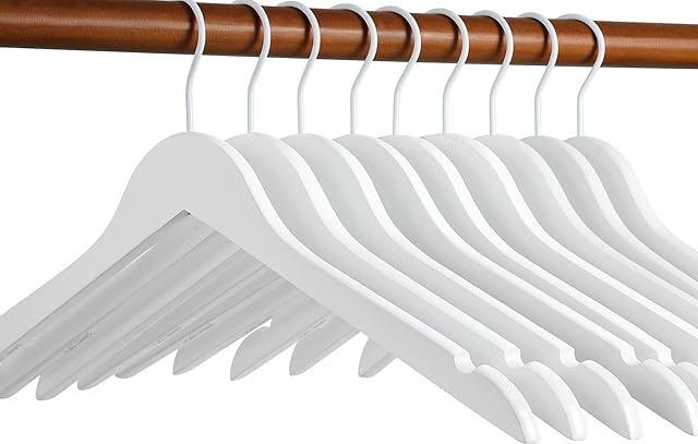 TOPIA HANGER Bride Hanger for Wedding Dress, Premium White Wooden Hangers, 360° Swivel White Hook, Smooth Finish, Extra Smoothly Cut Notches, 10 Pack-CT06W