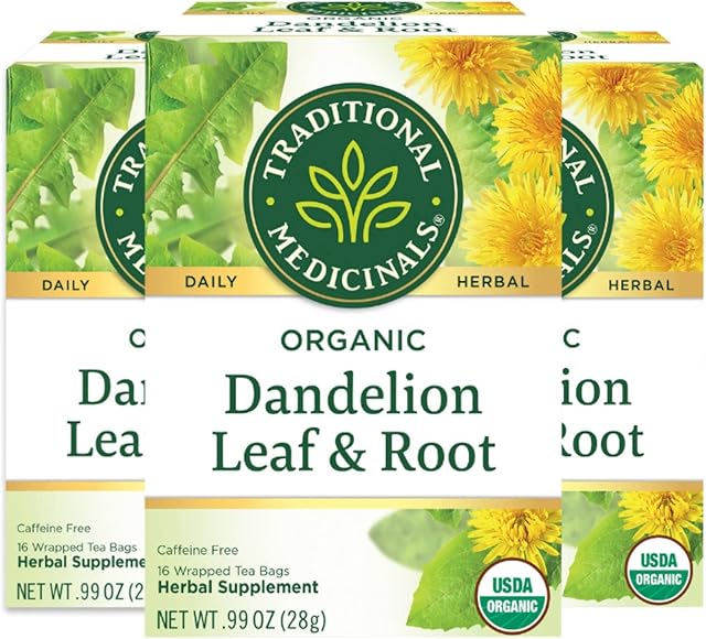 Traditional Medicinals Organic Dandelion Leaf & Root Herbal Tea, Supports Kidney Function & Healthy Digestion, (Pack of 3) – 48 Tea Bags Total