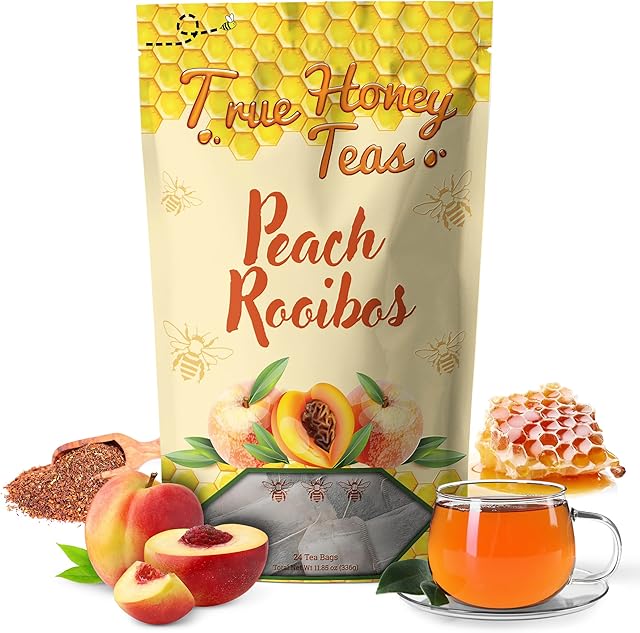 True Honey Teas Peach Rooibos Tea Bags – All Natural Organic Rooibos with Dried Peach Juice – Herbal Caffeine-Free Blended with Honey Crystals – 24 Count
